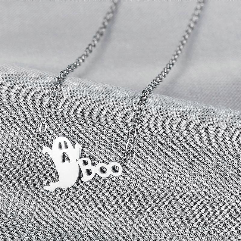 Funny cartoon ghost necklace for women, niche design, punk style titanium steel