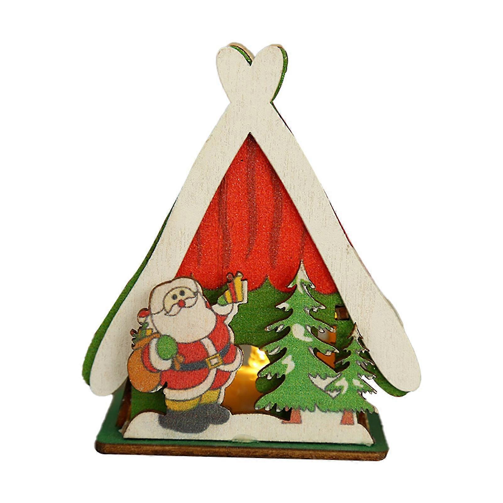 Luminous Xmas Pendant With Lanyard Wood Led Light Decoration Christmas Cabin For Halloween Y