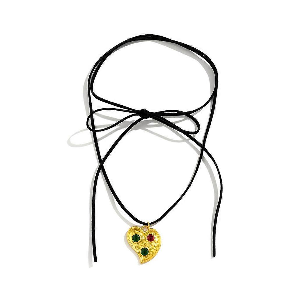 Irregular Heart Pendant Necklace Long Rope Bowknot Choker Necklace Jewelry