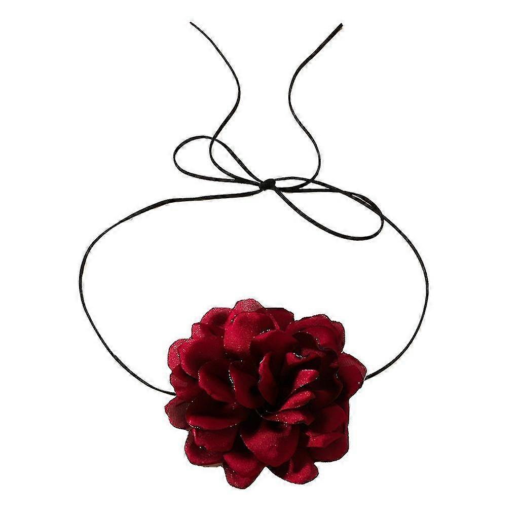 Oversized Flower Choker Necklace Neck Chain Temperament Long Strap Necklace - G