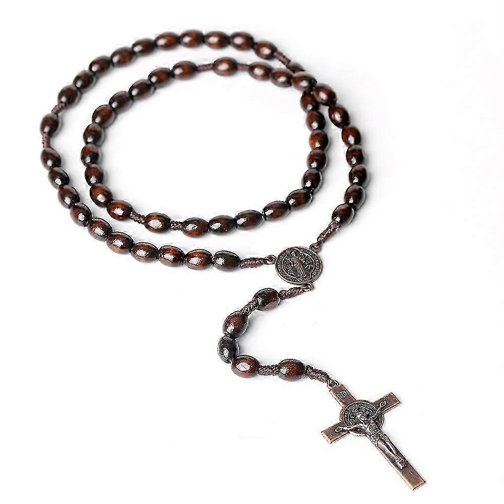 Cross Pendant Necklace with 59 Wooden Beads Religious Rosary Jewelry for Prayer Meditation