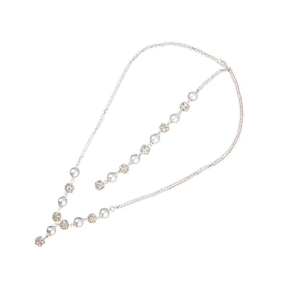 Elegant Silver Wedding Pearl Pendant Necklace with Back Chain – Stylish Bridal Jewelry for Women, Long Multi Strand Design for Weddings and Parties