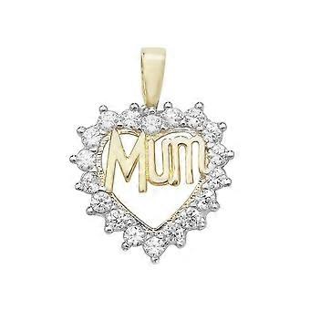 9ct Yellow Gold Heart Mum Zirconia Pendant PN1019