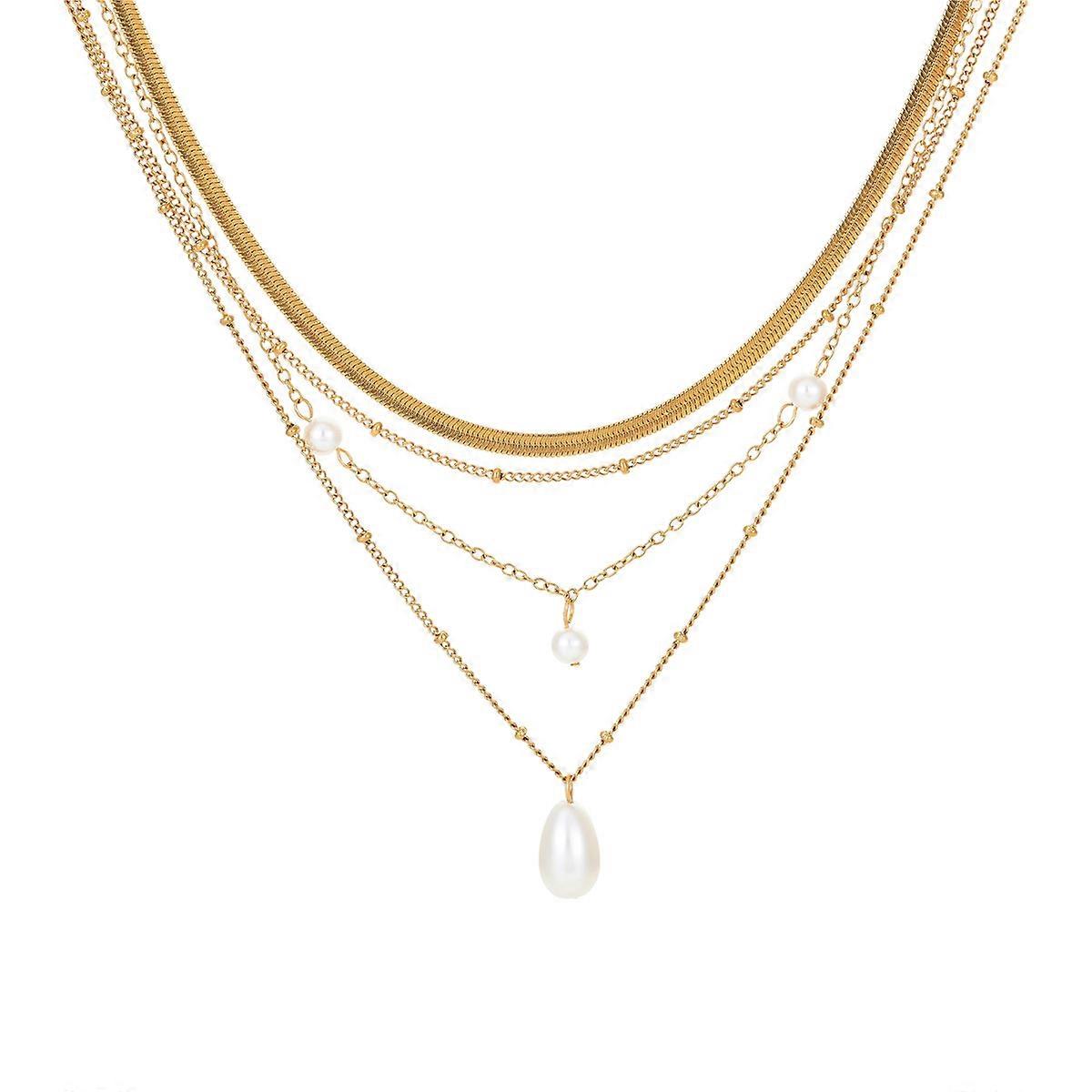 Multi-layer Necklace, Women's Water Droplet Imitation Pearl Tassel Pendant Stackable Simple Fashion Jewelry