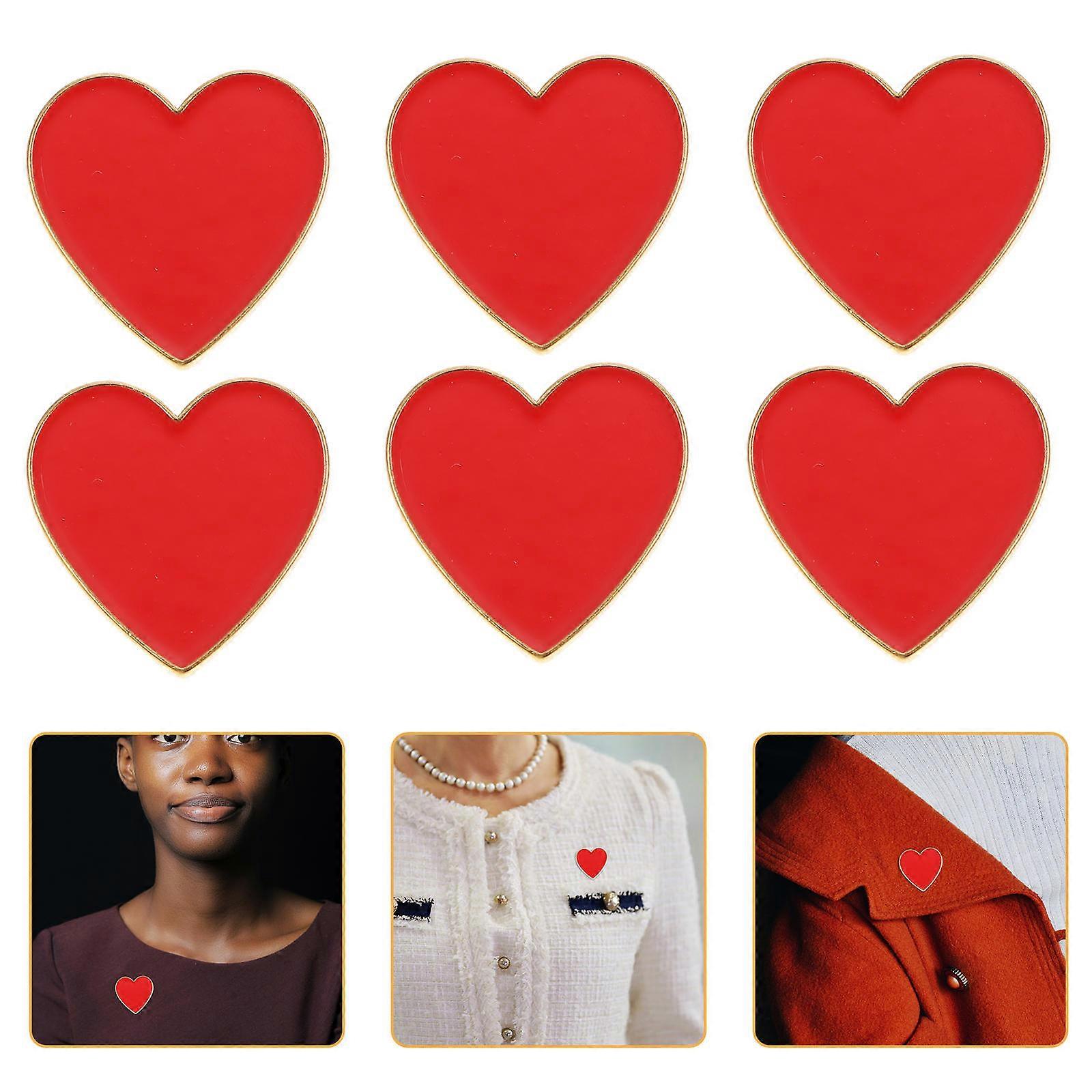 Heart Shaped Button Pin Valentine Day Heart Lapel Pin Decorative Clothes Accessory Red 2.25X2CM 6Pcs
