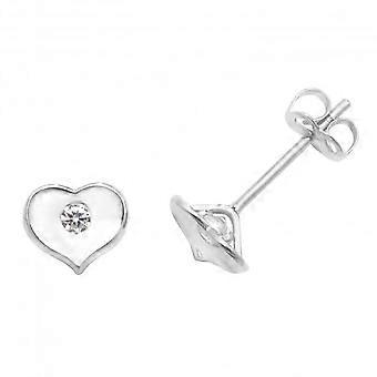 9ct White Gold Heart With Single Zirconia Stud Earrings ES430W