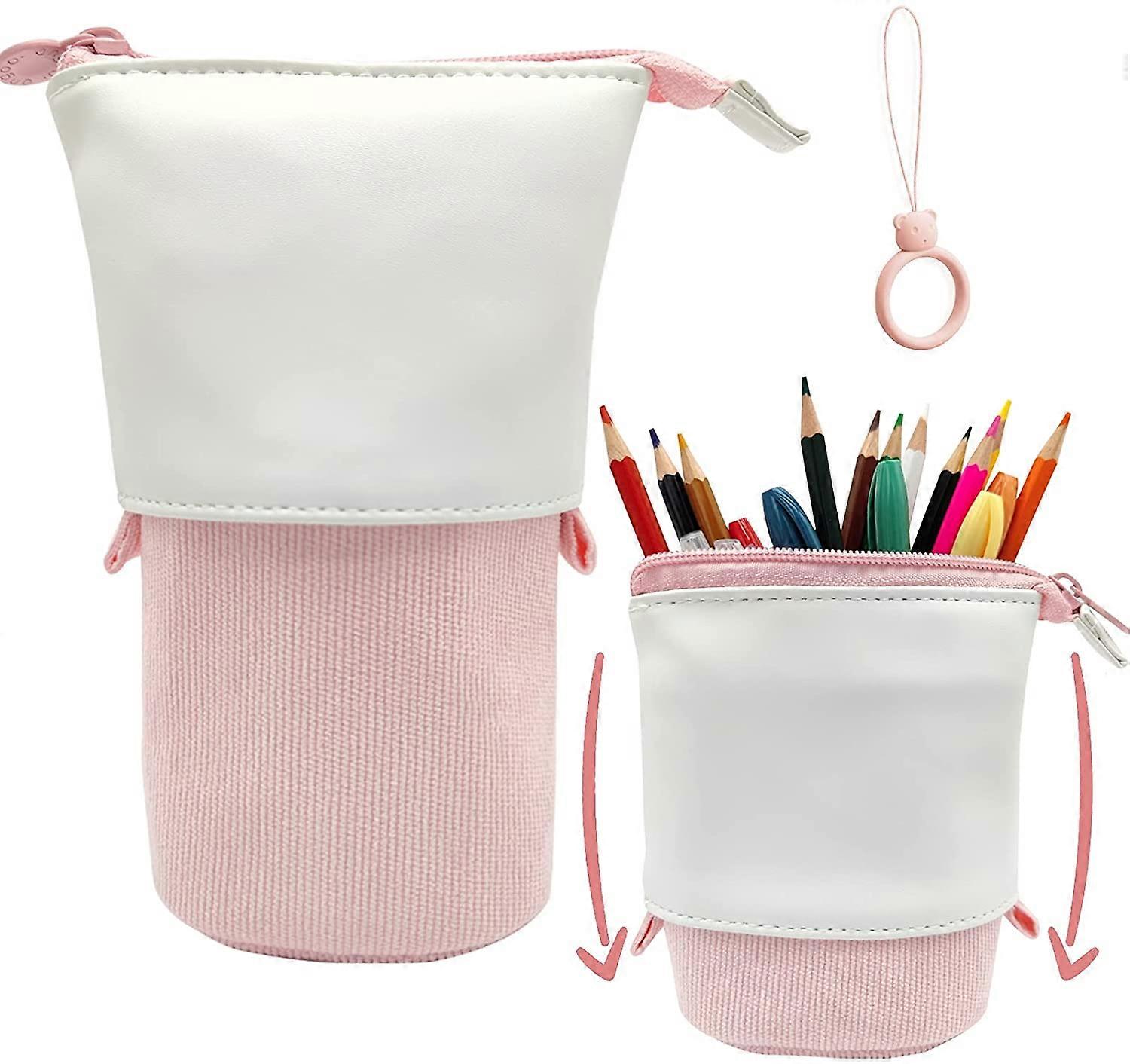 Pencil Case Telescopic Pencil Bag Cute Stand Up Pen Holder Office Portable Storage Pencil Pouch Corduroy Pencil Box Makeup Bag Pink