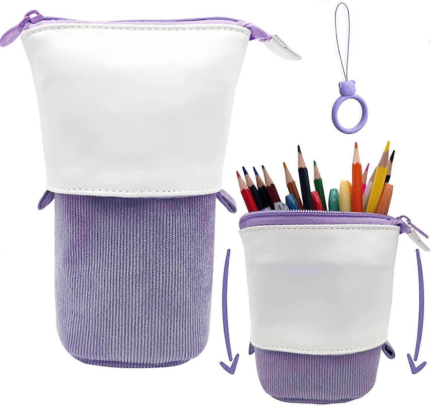 Pencil Case Stand Up Pen Holder Cute Telescopic Pencil Pouch Office Portable Storage Pencil Bag Corduroy Pencil Box Makeup Bag Purple