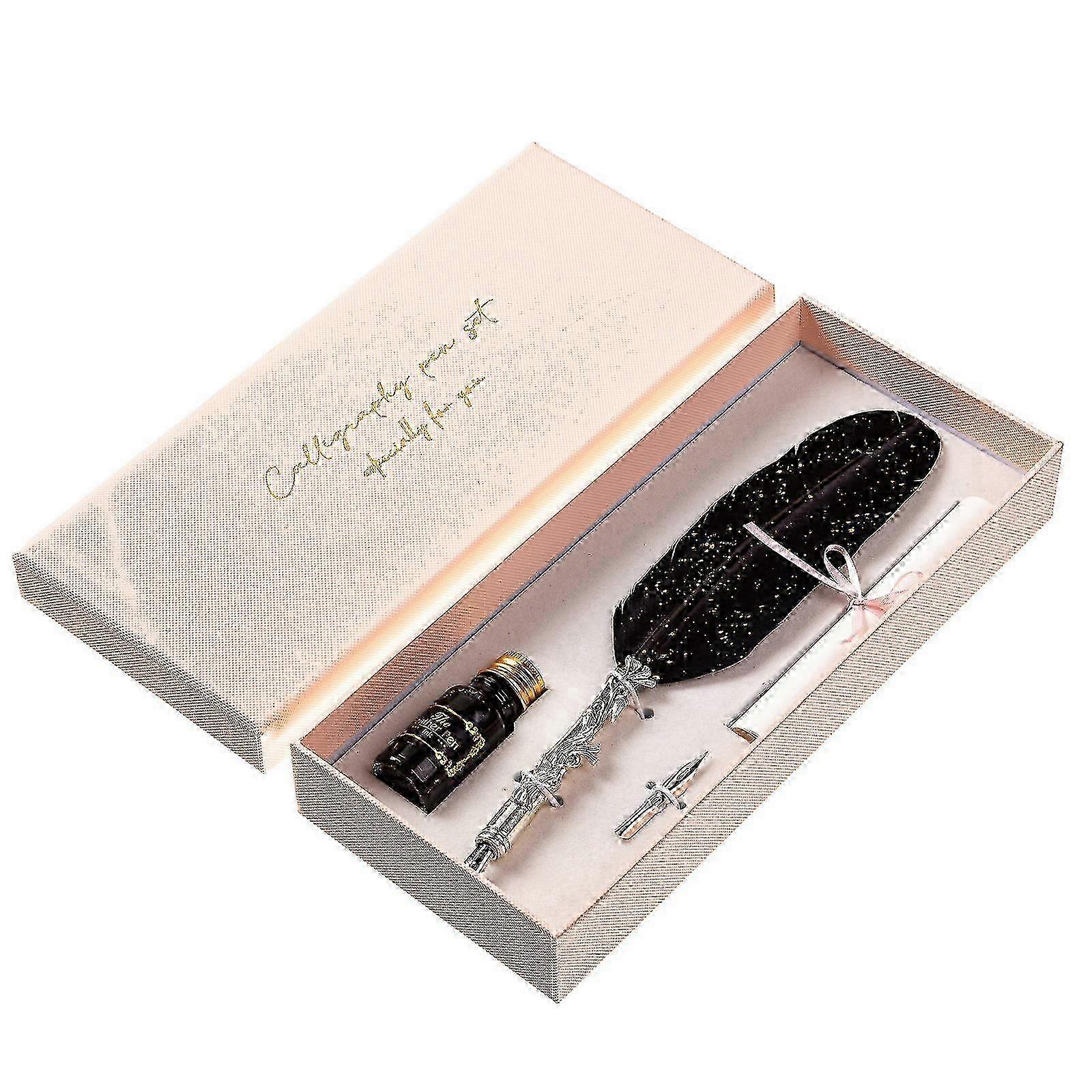 Feather Dip Pen with Pen Nib and Ink, Retro Quill Pen Feather Dip Pen Calligraphy Gift for Beginner Gothic Calligraphy