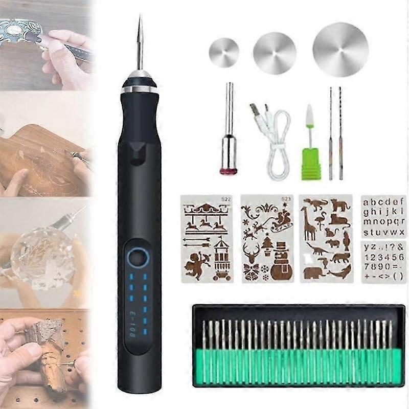 Convenient USB Rechargeable Design: This engraving pen for all materials features a convenient USB rechargeable design, eliminating the need for batteries and providing a power source for continuous use. Simply plug Engraving Pen Made for Dempiire into any USB port or power bank to recharge, ensuring uninterrupted engraving sessions<br> Precision and Control: with precision in mind, this Engraving Pen Made for offers excellent control and accuracy, allowing users to create intricate designs and engravings effortlessly. The ergonomic grip of Engraving Pen Kit provides comfort during extended use, ensuring steady hands and consistent results<br> Complete Engraving Kit: In addition to the pen itself, the Engraving Tool kit includes a variety of engraving tips, allowing users to achieve different effects and styles. This means you can between fine lines for intricate designs and broader tips for larger areas without needing to purchase additional tools. The engraving machine also features a durable carrying , making it easy to transport and store all your engraving supplies<br> Possibilities: From customizing jewelry and personal belongings to marking tools and , the Engraving Pen Made for DIYers opens up a world of possibilities. Let your imagination run wild and leave a lasting impression with this powerful and versatile tool<br> Cordless Freedom for On-the-Go Creativity – With up to 2 hours of rechargeable battery life and USB-C fast charging, the Customizer Engraving Pen lets you take your art anywhere. Cord-free, hassle-free, and ready when you are.<br> Item Name: Engraving Pen<br> Material: Aluminum Alloy<br> Battery Capacity: 300mAh<br> Features: Practical, Portable, Lightweight<br> Size Details:<br> L: 1.6cm/0.63", W: 1.6cm/0.63", H: 12cm/4.72" (Approx.)<br> Package Includes:<br> 1 x Engraving Pen<br> 5 x Engraving Templates<br> 33 x Grinding Heads<br> 4 x Cut Pieces<br> 1 x Charging Cable