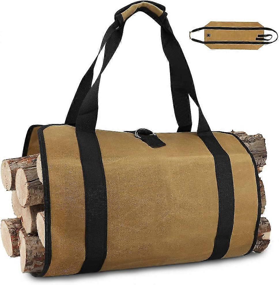 Canvas Log Bag Fireplace Firewood Storage Bag Large Capacity Outdoor Log Holder Waxed With Handles Sturdy(98x45cm)