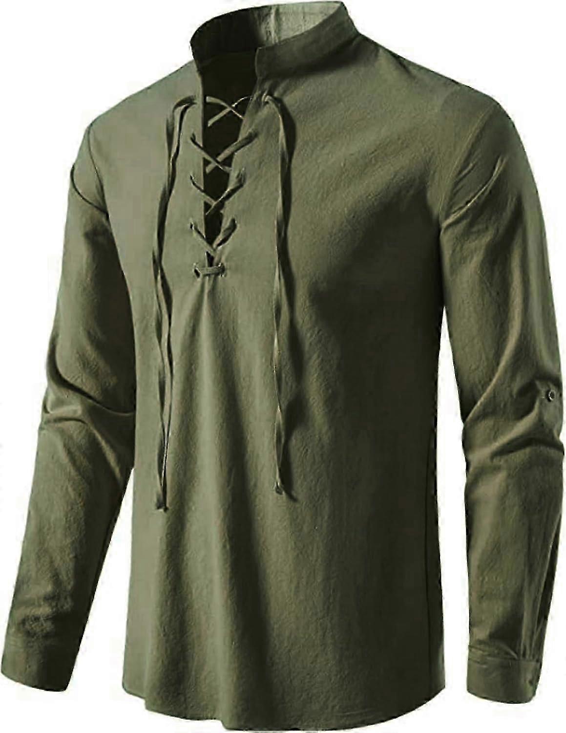 Men's Long Sleeve Shirts Retro Style Lace up for Medieval,Viking,Hippie Halloween Cosplay Pirate Renaissance Costume