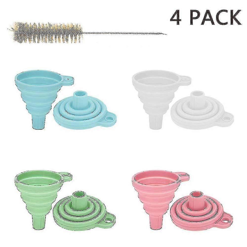 Collapsible Funnel Set Of 4 With Bottle Brush,small Flexible Silicone Foldable Kitchen Funnel For Li