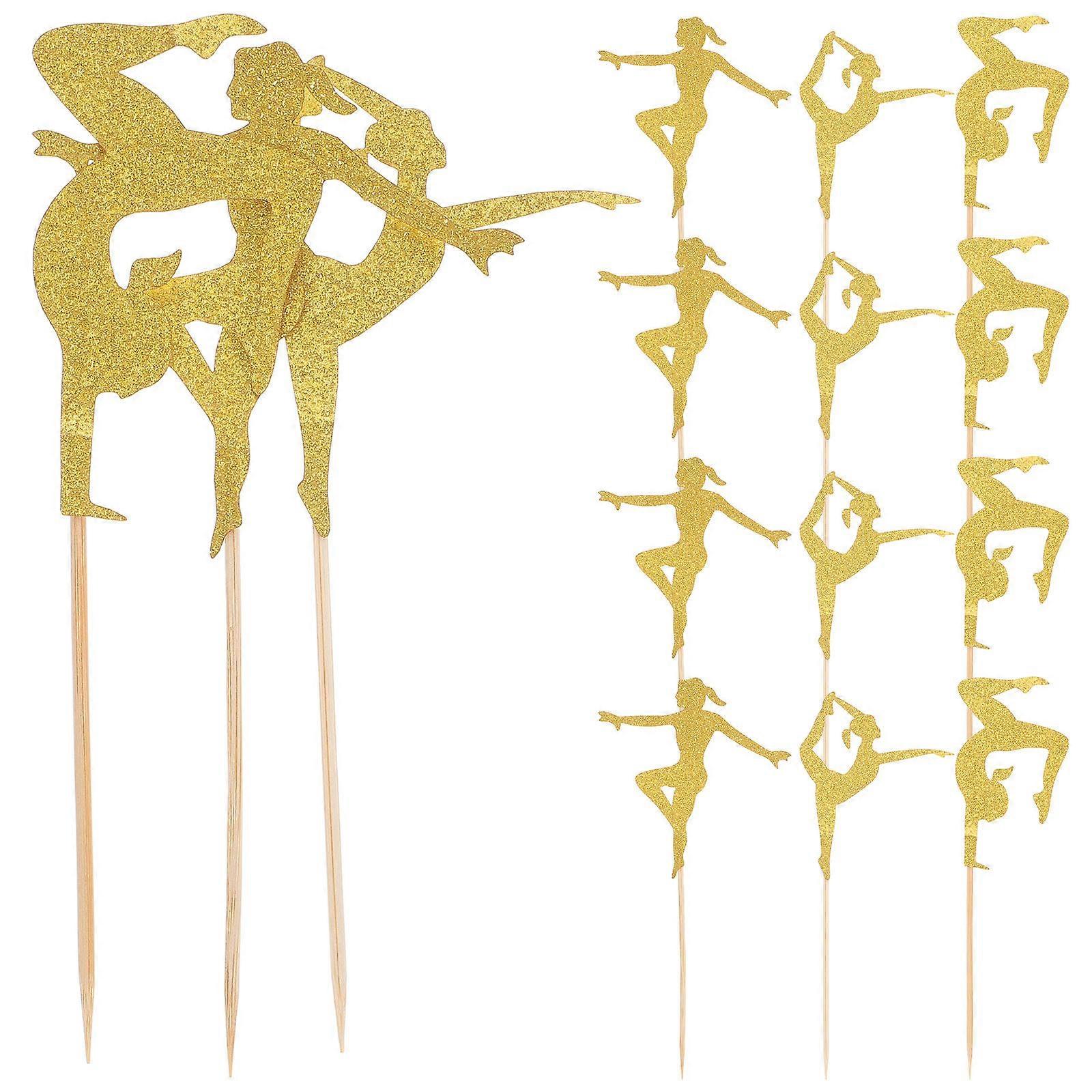 Party Cupcake Toppers Golden Gymnastic Cupcake Topper 16.7x4.4cm Paper Wood Stick Decoration 24Pcs
