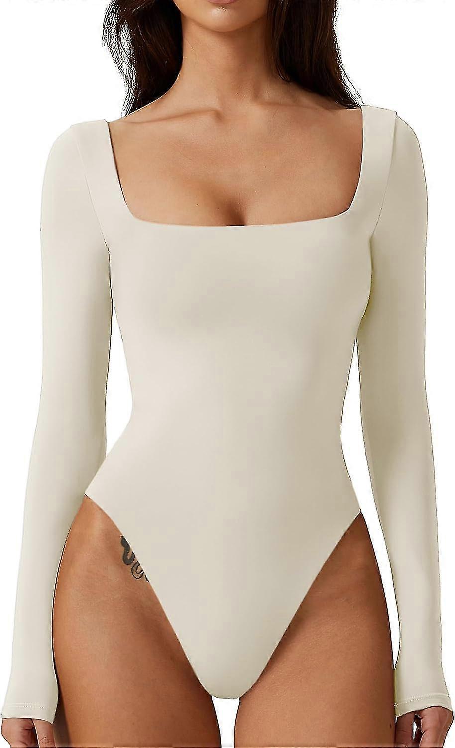 Bodysuit Tops for Women Square Neck Long Sleeve Double Lined T-shirt