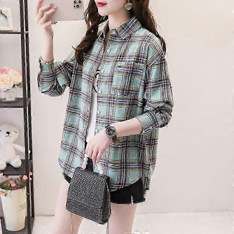 Plaid Shirt Women's Loose Long Sleeve Spring And Autumn Style Versatile Casual Student Spring And Autumn Plus Size Korean Style Shirt Coat Cotton