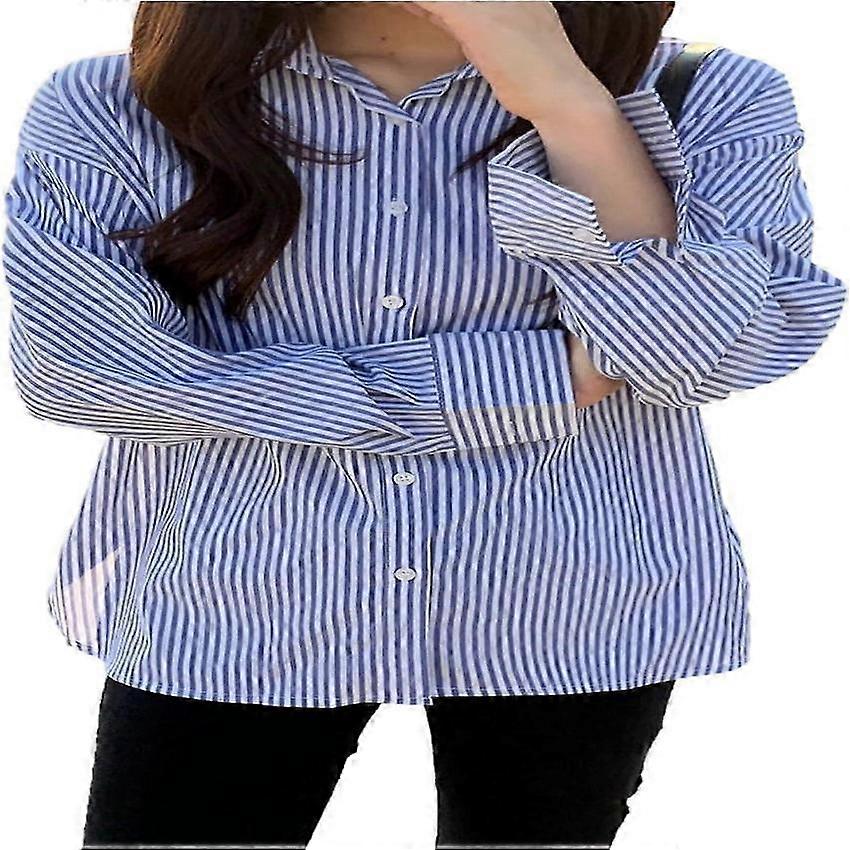 Long Sleeve Striped Button Down Shirt for Women Office Work Blouse with Pocket