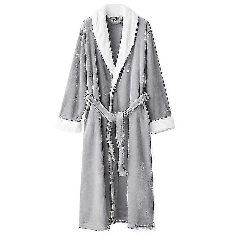Grey Flannel Man Nightgown with Coral Fleece for Winter Pajamas - Comfy Sleepwear