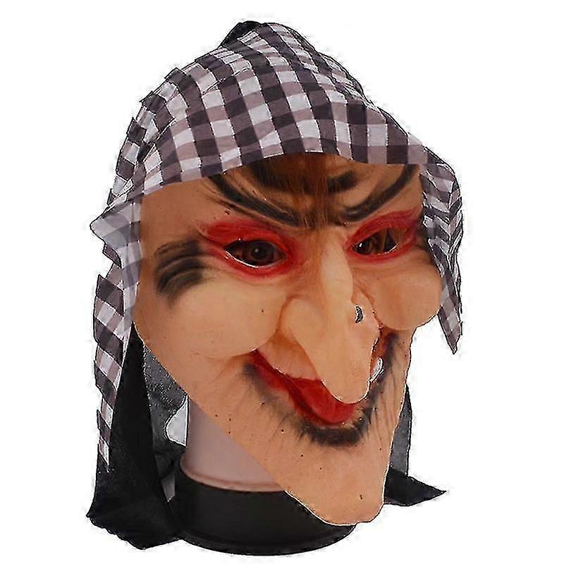 "Latex Old Witch Mask With Scarf Halloween Scary Women's Face Mask"