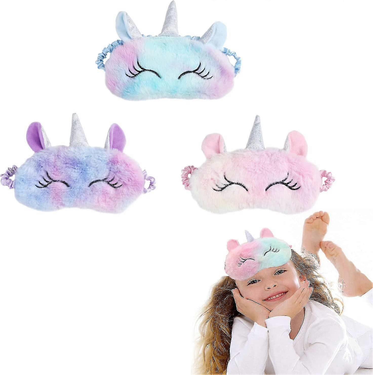 Soft Eye Mask, 3 Pieces Plush Sleep Masks, Blindfold Eye Mask, Kids Sleeping Mask, For Eyes For Night, Nap, Travel For Women Girl