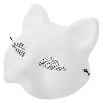 Cat Face Mask for DIY Painting Breathable Lace Half Face Costume Prop for Halloween, Masquerade & Cosplay Unfinished White Animal Mask for