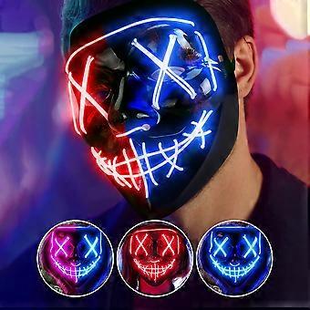Light up Mask LED Mask, Scary Halloween Mask, Glow Neon Mask Costume Mask with 3 Lighting Modes & El Wire for Men Women Kids Blue & Red