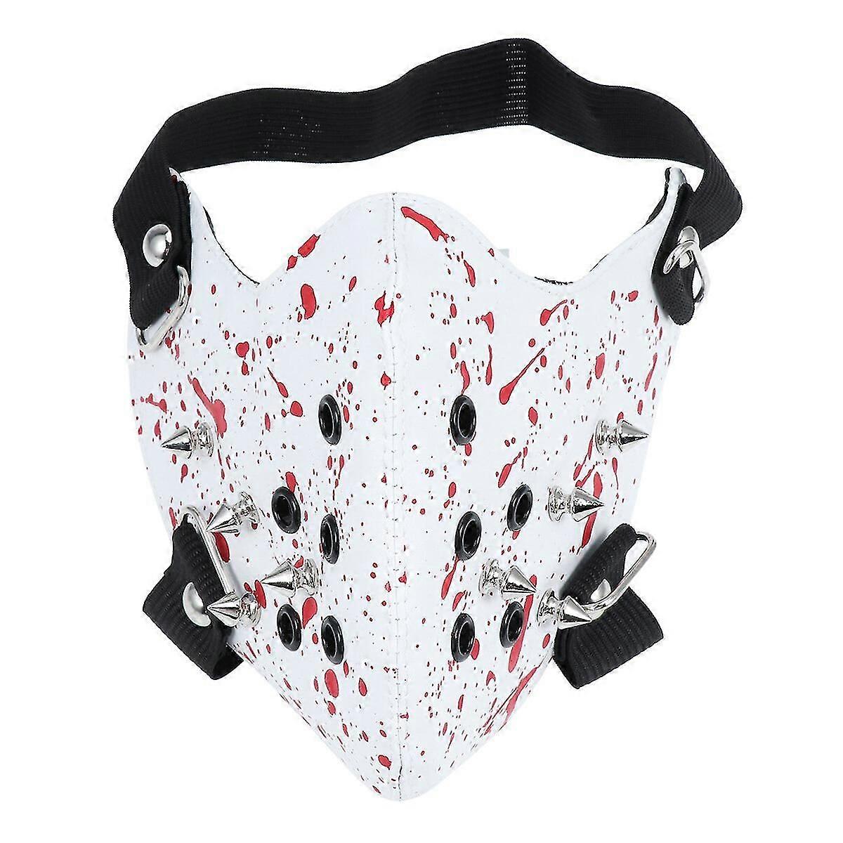 Halloween Rivet Mask Cool Bloody Half Face Mask Personality Punk Mask For Decor White And Red A