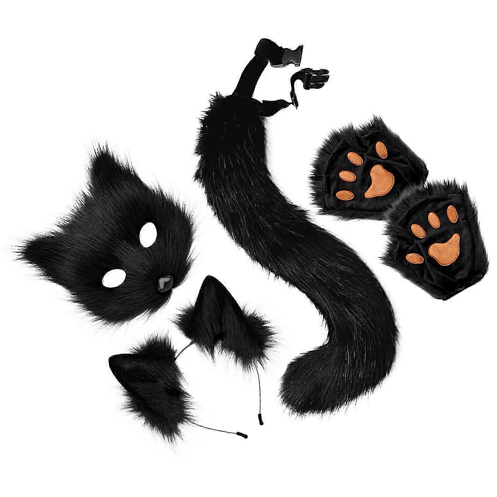 Therian Mask and Tail Lovely Furry Cat Mask for Halloween Party Holiday Birthday