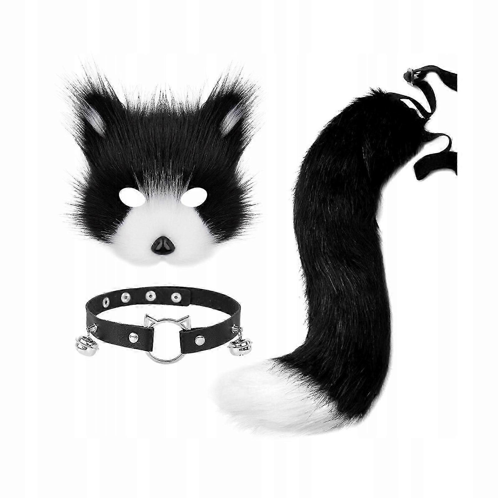 Therian Mask And Tail Face Mask Anime Dress Up Cute Animal Mask Black White