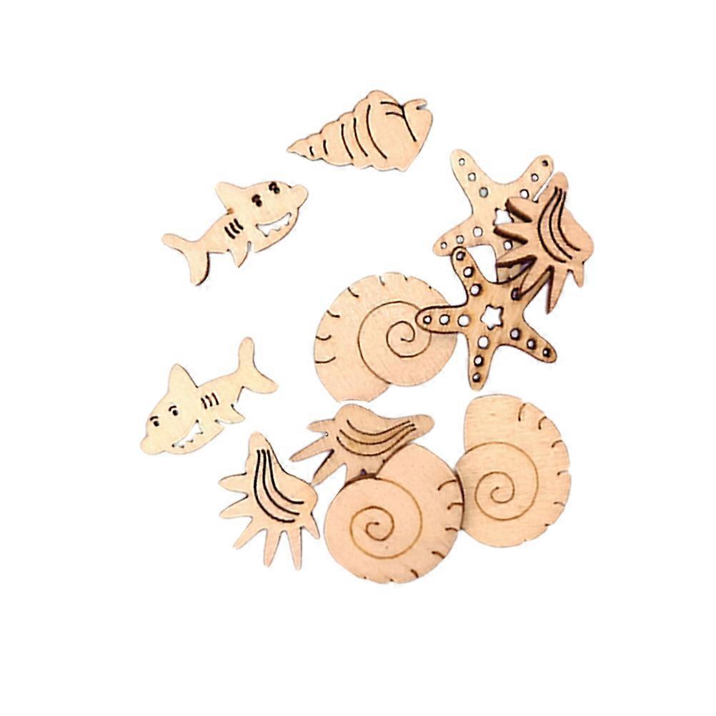 Ocean Wood Cutouts Wood Craft Ornaments Marine Fish Carvings Diy Accessories Shark Shape Decorations 50Pcs