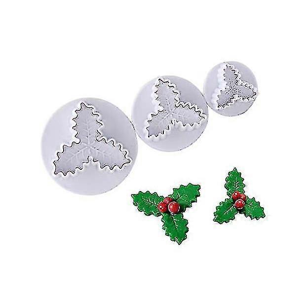 Christmas Holly Leaf Cookie Cutters, 3 Pcs Holly Leaves Cookies Molds, Cookie Stamp, 3d Biscuit Mold, Cookie Plunger, Baking Mould, Fondant Mold, Deco