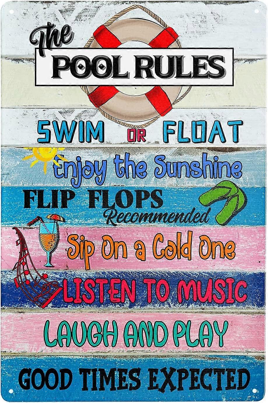 Pool Rules Metal Sign 12"x 8" Fun Pool Signs For Swimming Pool Garden, Swimming Pool Decorations For Wall Pool Rules Sign