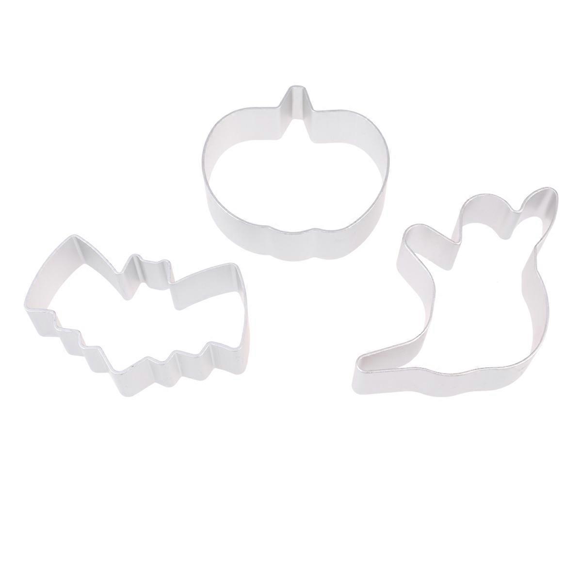 Halloween Baking Moulds Pumpkin Ghost Bat DIY Aluminum Alloy Cookie Moulds Silver 8 x 7 x 6cm For Party Supplies 3Pcs
