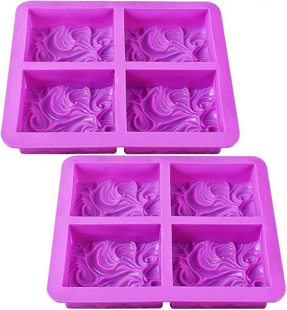 Silicone Soap Molds, 4-Cavities DIY Handmade Soap Mold with Vivid Wave Pattern for Milk Soap (3.5 Oz Cavities)purple2 Packs