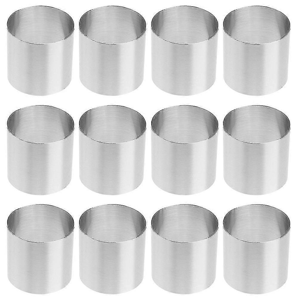 A. Are you looking for a professional and cost-effective cake-making mold? If so, stop searching around. B. Our baking molds are likely to meet your needs. They are made of good materials and can be used for a relatively long time, making them a good choice for you. C. Product Features 1. **Color**: Silver 2. **Material**: Stainless steel 3. **Size**: Approximately 5.00×5.00×5.00 cm / 1.97×1.97×1.97 inches 4. Made of decent materials, they are not prone to deformation, cracking, have little odor, and are non-stick. 5. The molds are easy to use and clean, bringing you a certain amount of convenience. 6. You can enjoy the time of making cakes with your children, which may help to improve the parent-child relationship and enhance practical skills. 7. They are designed with rounded corners and smooth edges, which are not likely to scratch the skin. 8. They are suitable for making cookies, cakes, cheesecakes, cookies, mousses, etc. D. Packaging List 12 molds