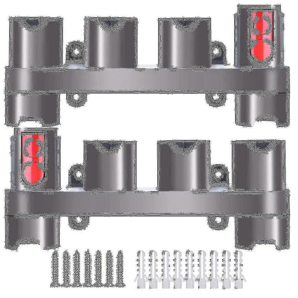 Best Compatibility - Accessory holders are perfectly compatible with for V11 V10, V8, V7 cordless handheld vacuum. Easily organize the accessories (attachments) of your vacuum cleaner, space-saving.More Adapters Than Ever - Each accessory holder comes with ten adapters in your docking station, including the left and right side. You can snap almost all your for V7 V10 V11 V8 attachments together on these adapters, no more lost accessories and well protected.Premium and Compact Design - Made of high quality material and full polishing design, the polished gray and gorgeous red are well finished like for attachments and vacuum cleaners.EASY INSTALLATION: To drill or not to drill? It's all up to you. Comes with 8 screws so you can drill and install it on the wall, or you can just attach it to the charging station.360 Degree Rotatable Connectors - The connectors are all adjustable 360 degrees for a more reasonable position for each accessory that they won't collide and rub against each other.Colour: as shownMaterial: PlasticPackage Contents:2 * Wall Mount holder1 set * Screw AccessoriesOnly the above package content, other products are not included.Note: Light and different displays may cause the color of the item in the picture a little different from the real thing. The measurement allowed error is +/- 1-3cm.
