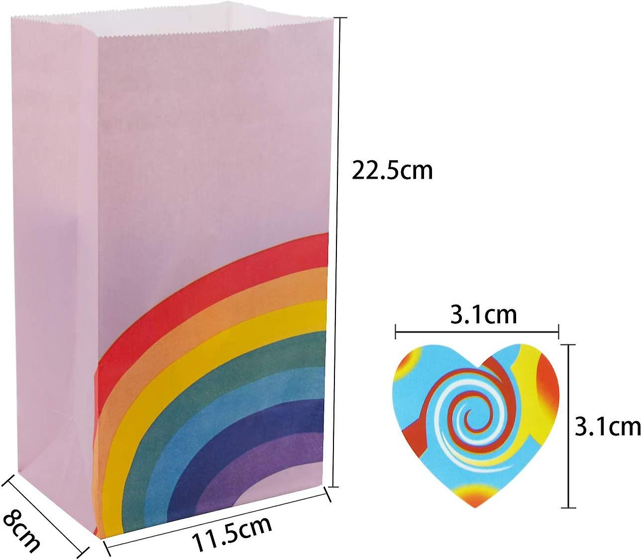 Rainbow Party Gift Bags, 48Pcs Paper Bags Candy Bag with 64Pcs Heart Stickers Gift Pouches for Chris