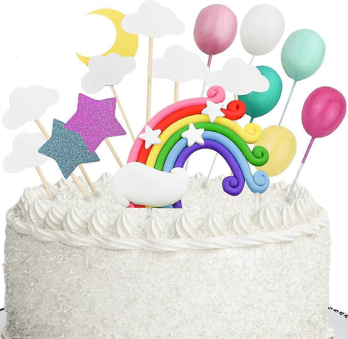 Rainbow Cloud Cake Topper Kit Colorful Pottery Rainbow Clouds Cake Topper & Balloon & Stars & Moon Cupcake Decoration Set Birthday Party Supplies For