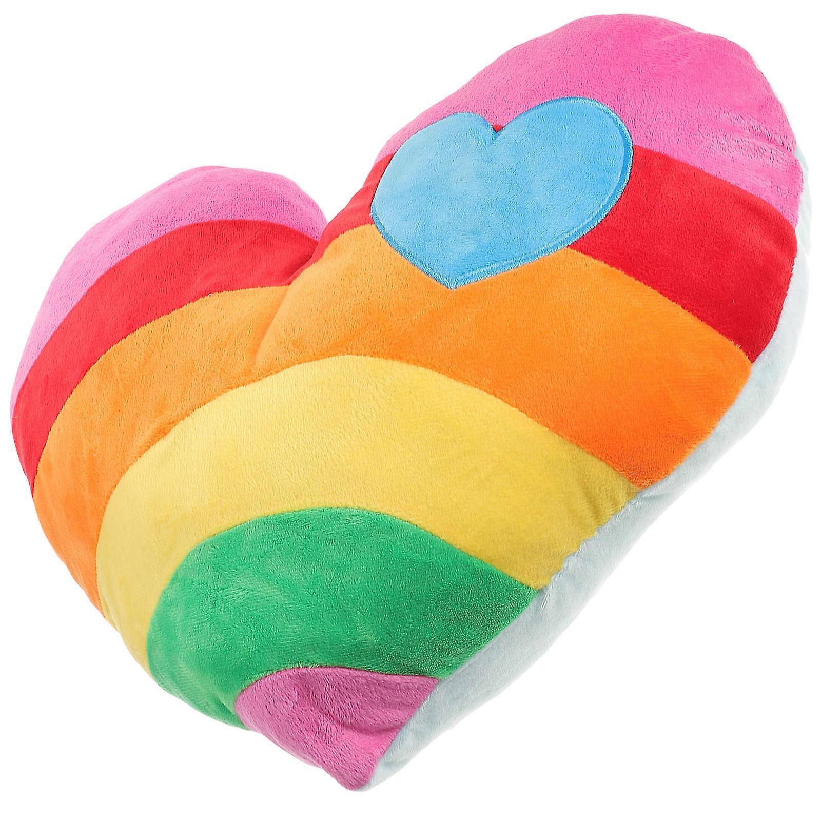 Rainbow Heart Shaped Throw Pillow Plush Cushion Soft Comfortable Home Office Car Decor Creative Valentine's Day Birthdays