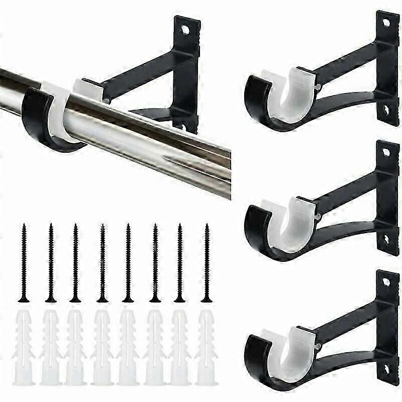 Curtain Rod Bracket, Curtain Rod Base, Fixing Accessories - for 26-28mm Rods, Black, 4pcs