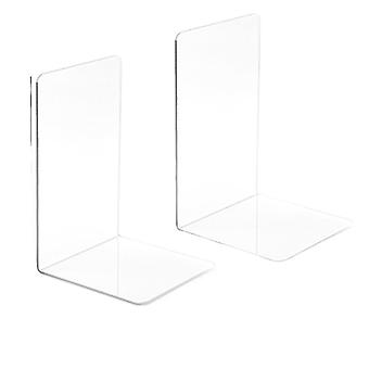 Sturdy And Durable Acrylic Clear Bookends, Bookends With 8pcs Silicone Pad And A Piece Of Magic Diamond Sticker; Best For Desk Organizer.(2pcs)(whit