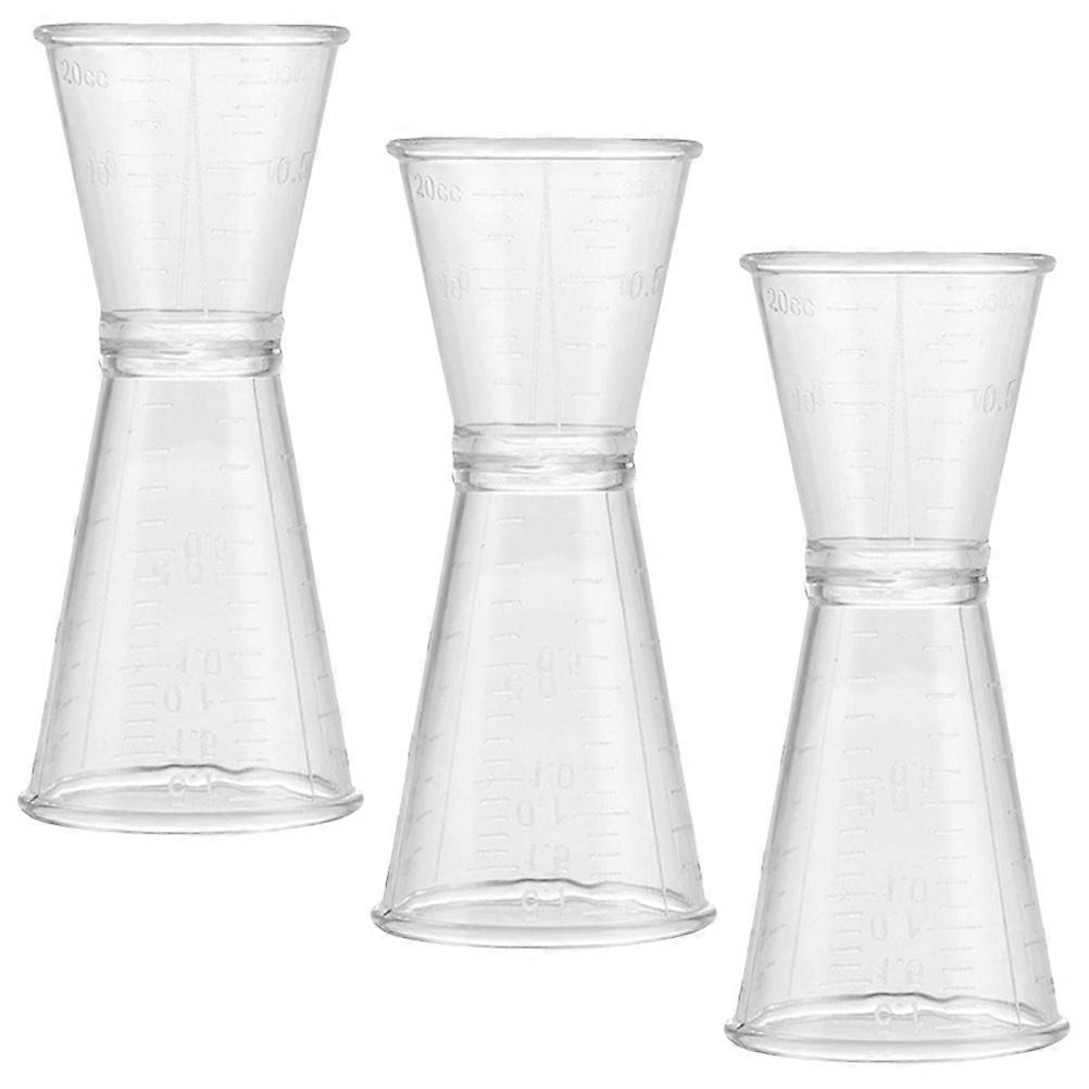 Double jiggers are made from reusable Reusable material, and . The double jigger is suitable for measuring both liquid and dry ingredients, versatile for a variety of cocktail recipes. The compact size of the double jigger makes it easy to store in a bartender's kit or on a . Features -Color:Transparent -Material: Reusable -Size:10.60X4.70X4.70cm/4.17X1.85X1.85in - The double-sided cocktail jigger is made of sturdy and reusable Reusable material, and practical for using. - It comes with lightweight and compact size design, easy to use, save time and effort. - Our special bartender jigger belongs to indispensable accessories used for precise drink measuring and making delicious cocktails. - This cocktail measuring cup is suitable for many occasions such as bars, restaurants, family use, KTV and so on. - Reusable and highly practical, high hardness and transparency, and good corrosion resistance, which bring you convenience. Package list: 3 x Reusable Jiggers