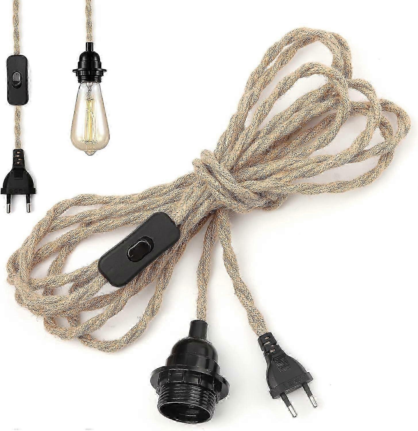 Chandelier Hemp Rope Cable 4.5m, E27 Socket Switch Wire Cable, for DIY Pendant Lamp Industrial Pendant Light Chandelier Socket Vintage Electric Wire (
