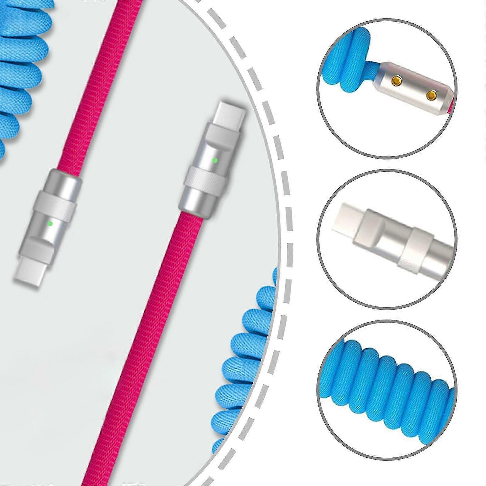 Retractable Spring Cable, 120W USB C Rapid Charging Cable For Type C Electronics Metal Housing Plugs
