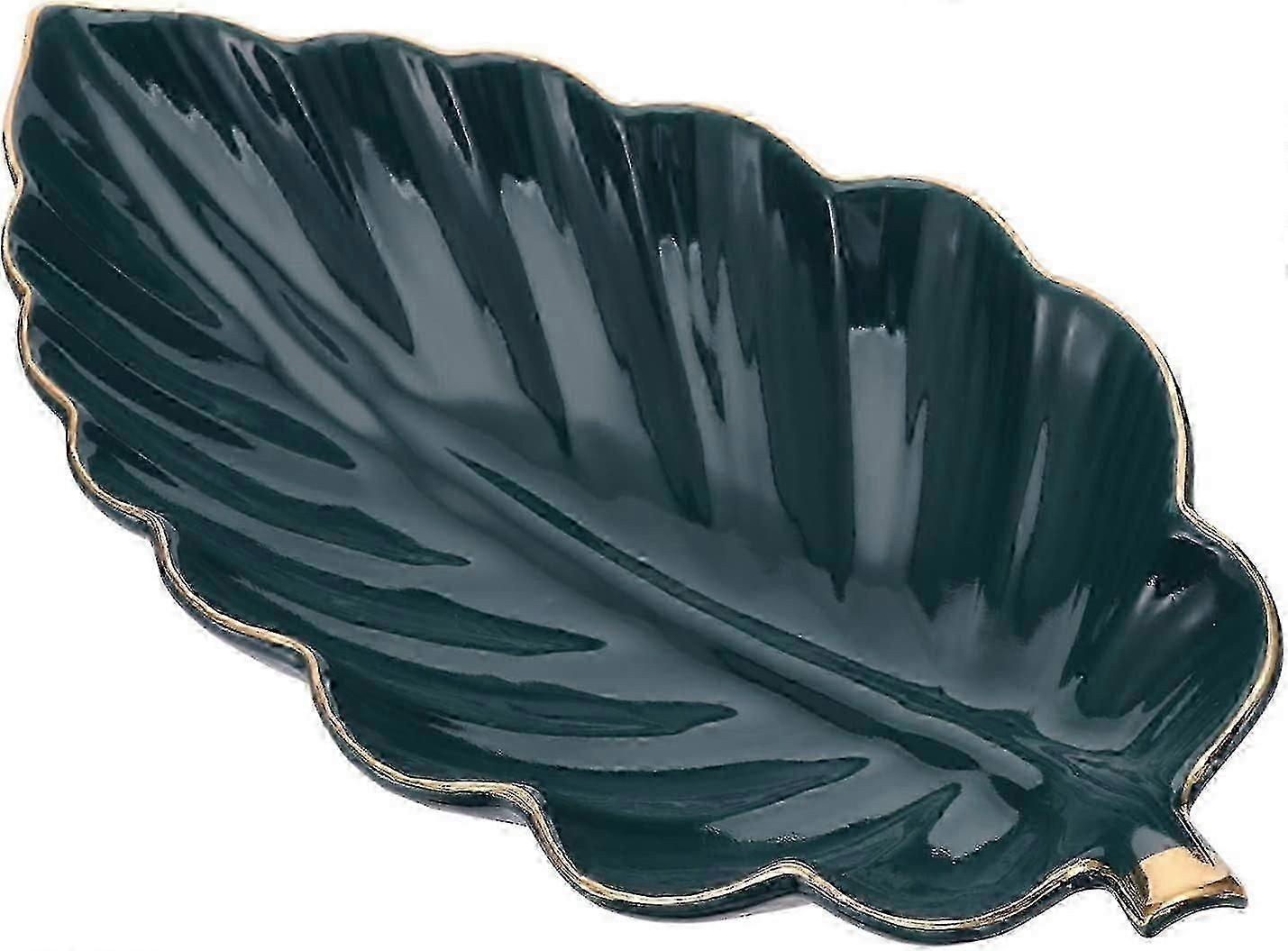 Cabilock Ceramic Jewelry Dish Organizer Leaf Shape Decorative Trinket Dish Accent Tray Jewelry Storage Plate Holder Bowl Compatible For Vanity Rings K