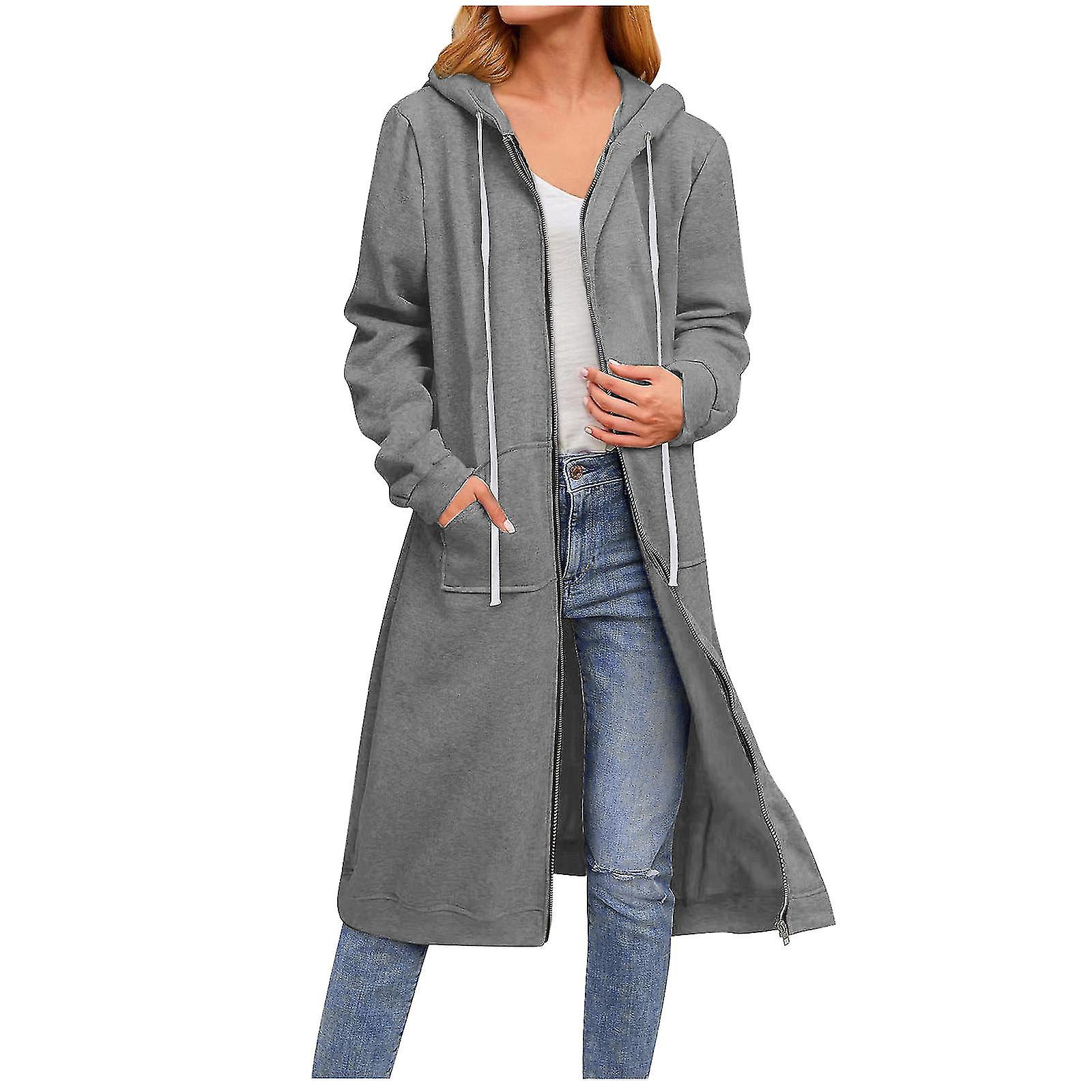 Full Zip Hoodies for Women Long Coat Fall Winter Casual Solid Long Sleeve Zipper Pocket Hooded Sweatshirt Tops Outwear-rx