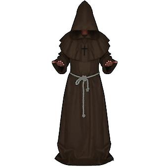 Medieval Priest Cosplay Men Hooded Cloak Cape Carnival Halloween Costume