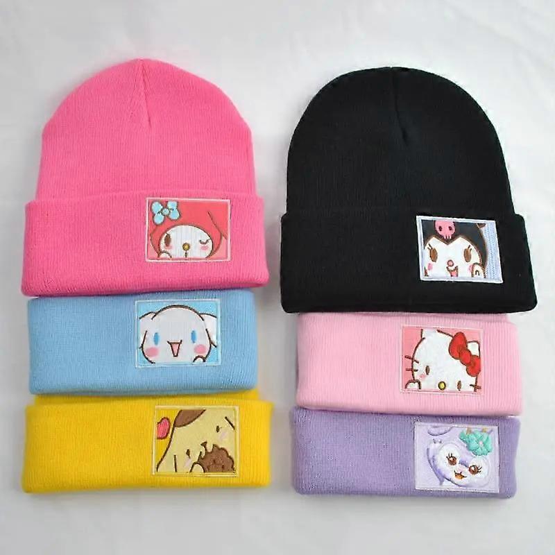 Kawaii Sanrio Anime Knit Cap Cute Kuromi Hello Kitty My Melody Simplicity Fashion Versatile Winter Beanies Girls Christmas Gift