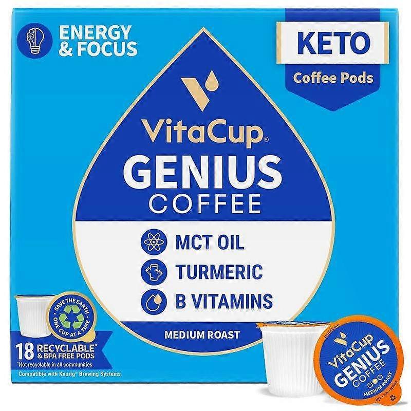 Vitacup Genius Energy & Focus Coffee Pods, Medium Roast, 18 Ea