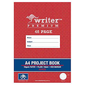 Writer Premium Project Book 70gsm Paper A4 Plain 8mm Ruled with Red Margin